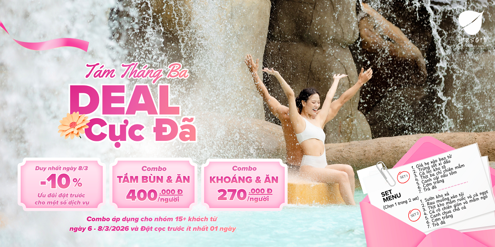 - Combo Tắm bùn & Ăn trưa: Chỉ 400.000 Đ/người. Trải nghiệm "signature" của I-resort giúp nâng niu làn da tối đa.